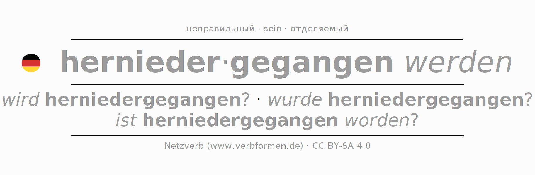 - Инфинитив I: herniedergegangen werden, herniedergegangen zu werden