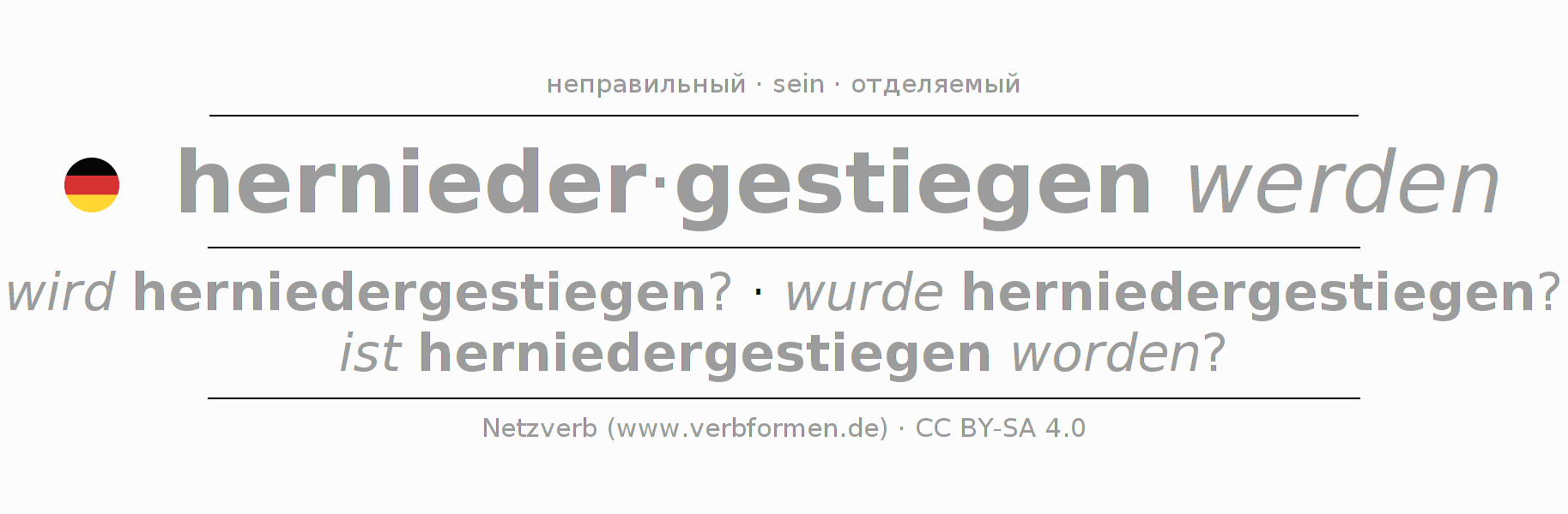 - Партицип II: herniedergestiegen worden