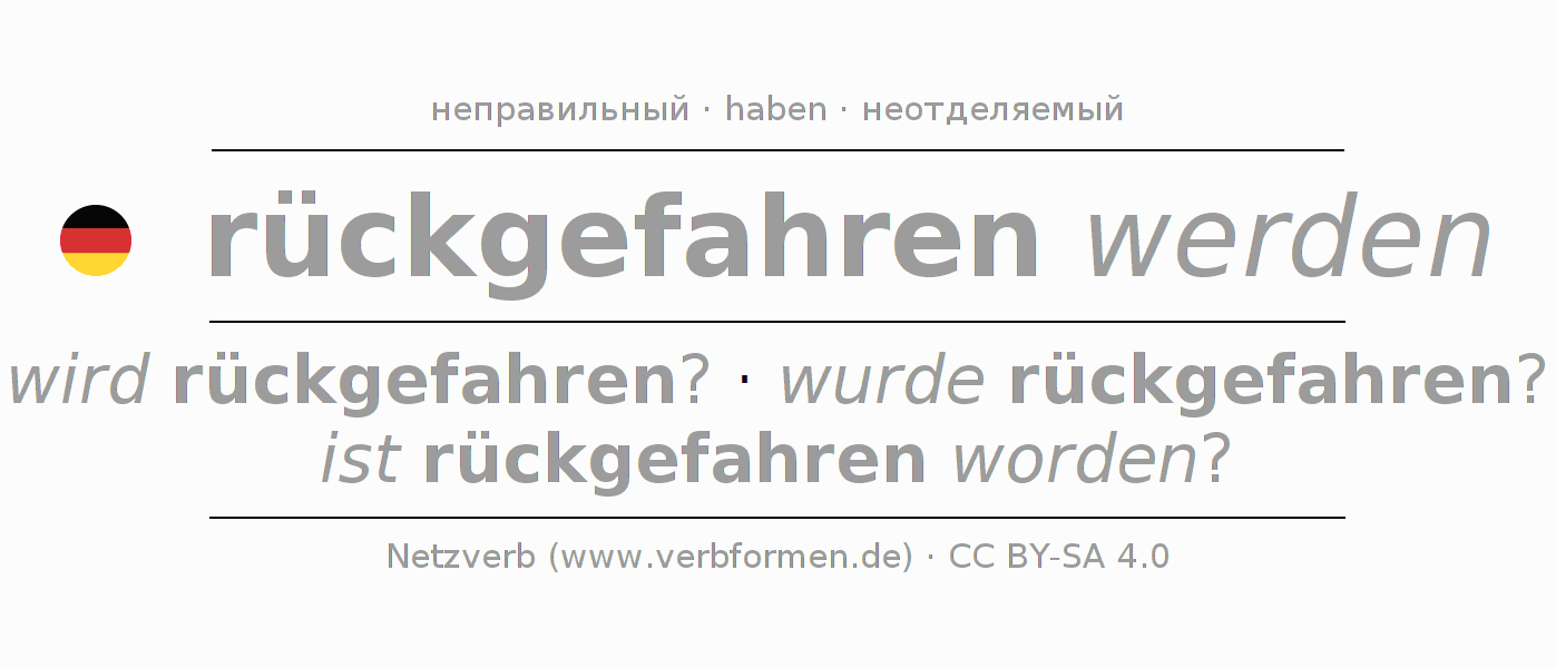 - Инфинитив I: rückgefahren werden, rückgefahren zu werden