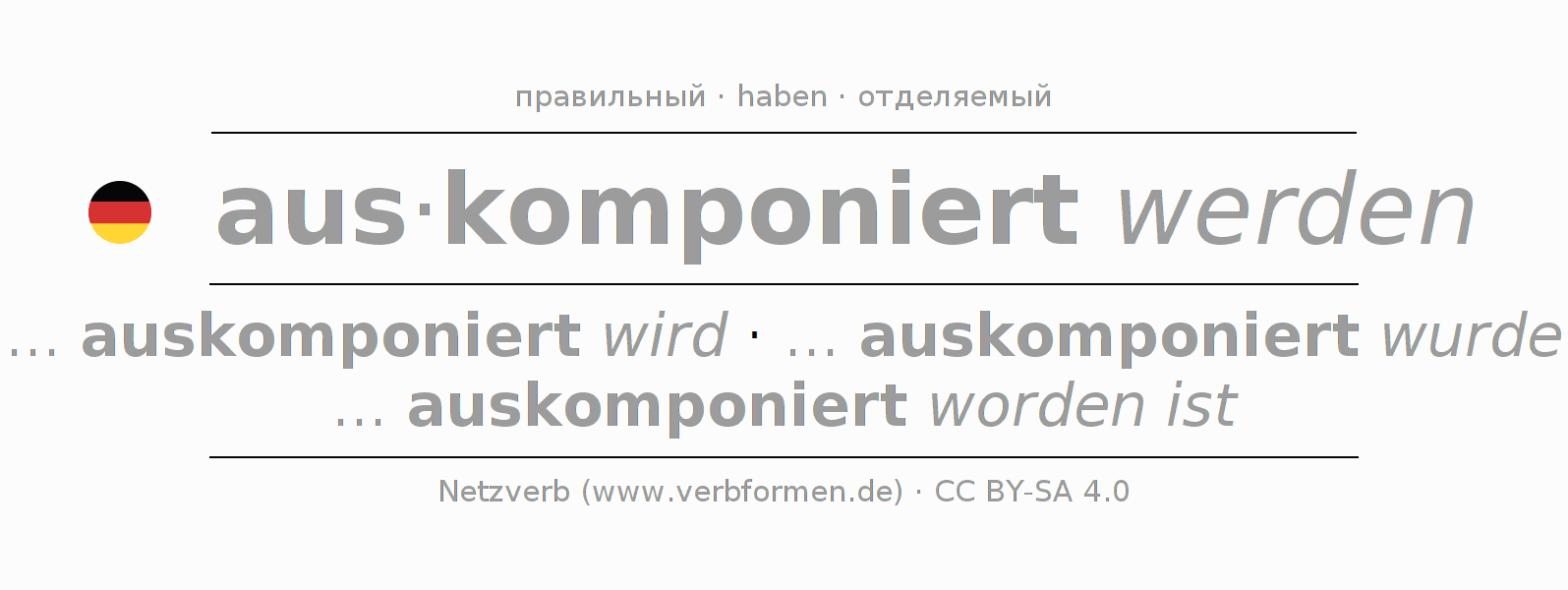 Глагол auskomponieren спрягается в индикативе Пассив с werden в настоящем, прошедшем и будущем времени