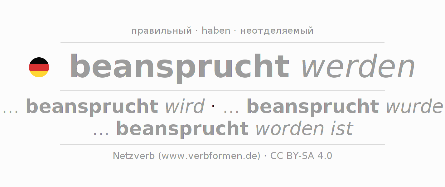 Все временные формы глагола и отглагольных форм beanspruchen