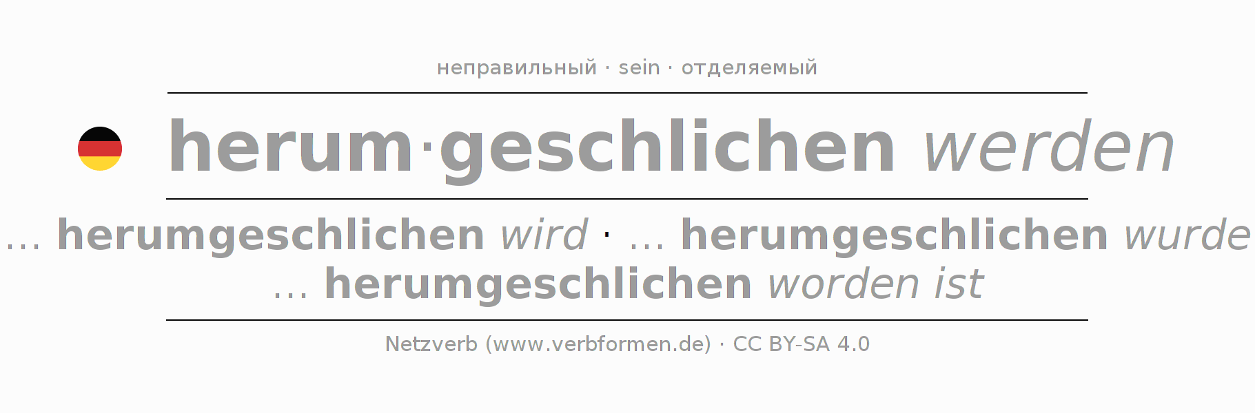 - Инфинитив I: herumgeschlichen werden, herumgeschlichen zu werden