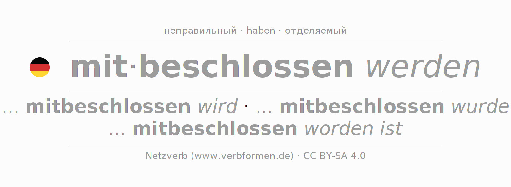 - Инфинитив I: mitbeschlossen werden, mitbeschlossen zu werden