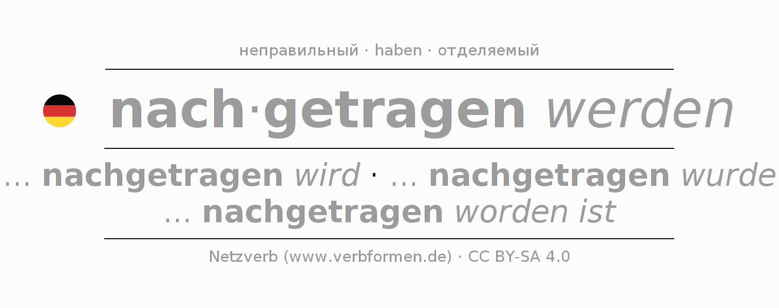 - Инфинитив I: nachgetragen werden, nachgetragen zu werden