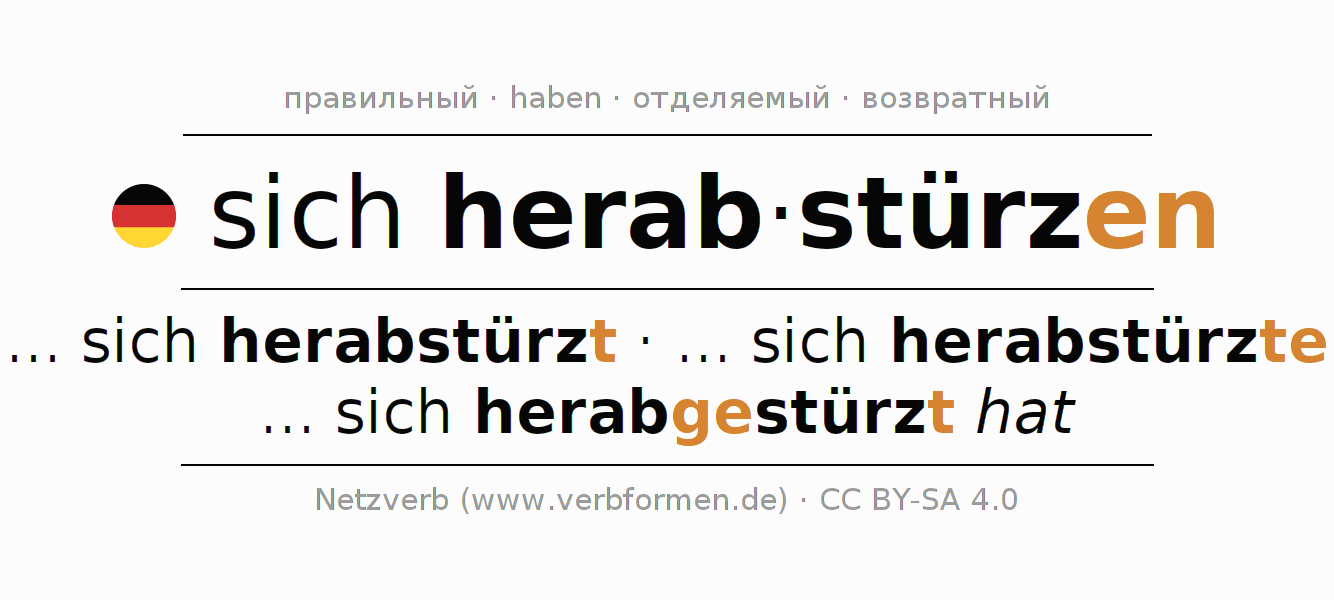 Спрягать глагол herabstürzen
