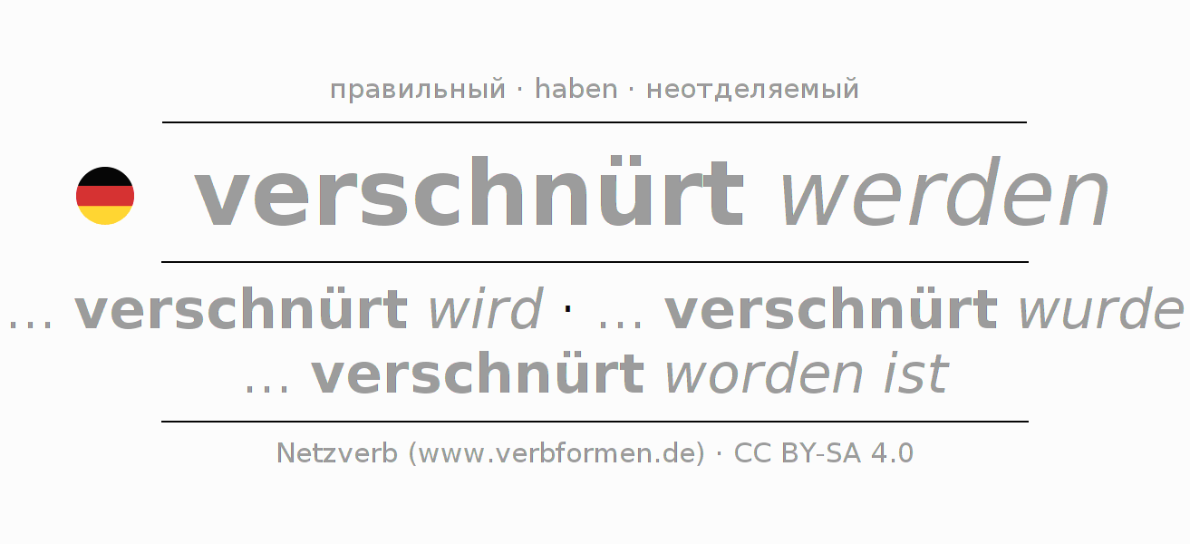 - Инфинитив I: verschnürt werden, verschnürt zu werden