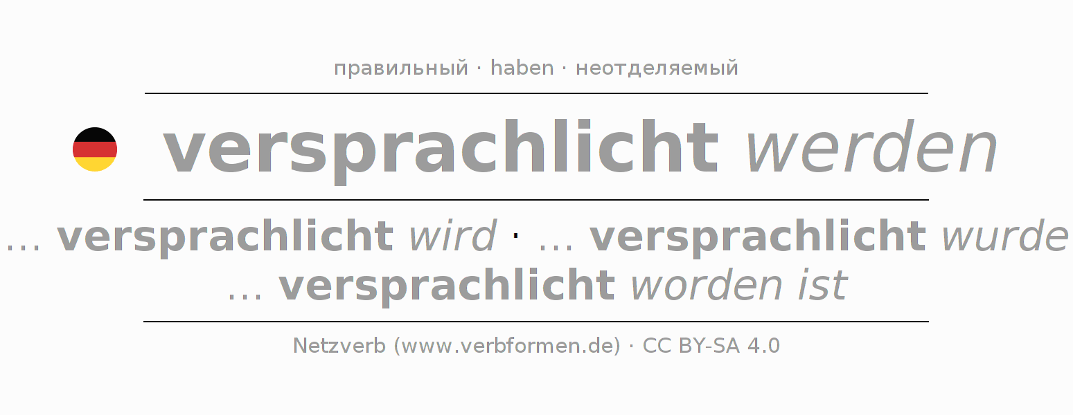 Все временные формы глагола и отглагольных форм versprachlichen