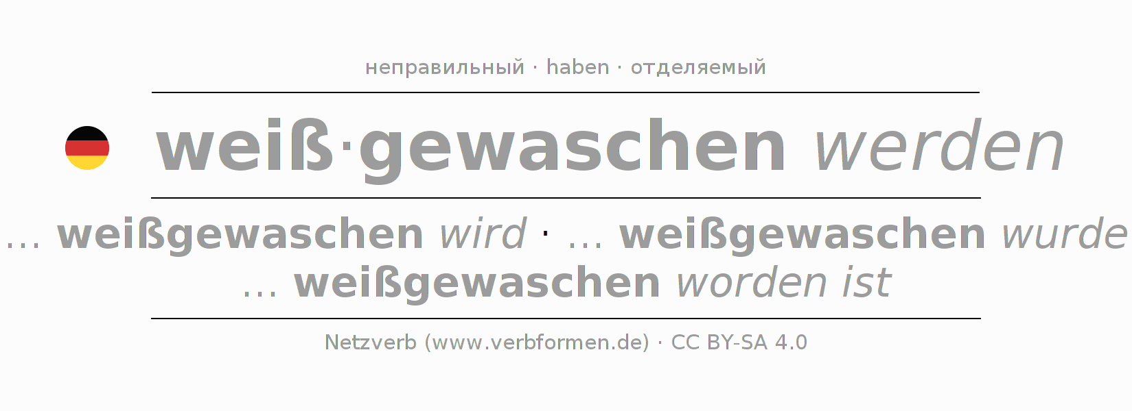 - Партицип II: weißgewaschen worden