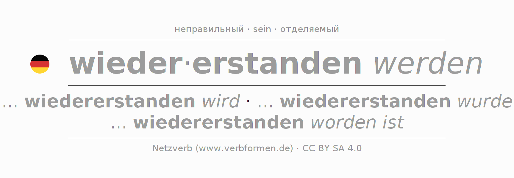 - Инфинитив I: wiedererstanden werden, wiedererstanden zu werden