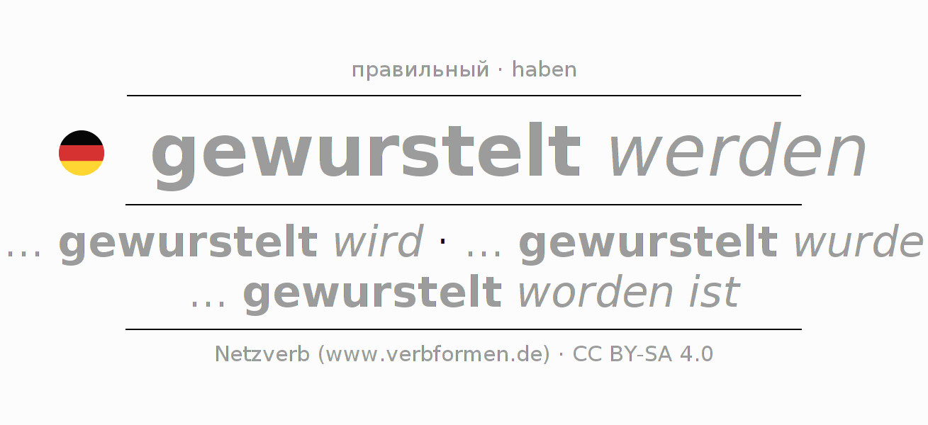 - Инфинитив I: gewurstelt werden, gewurstelt zu werden