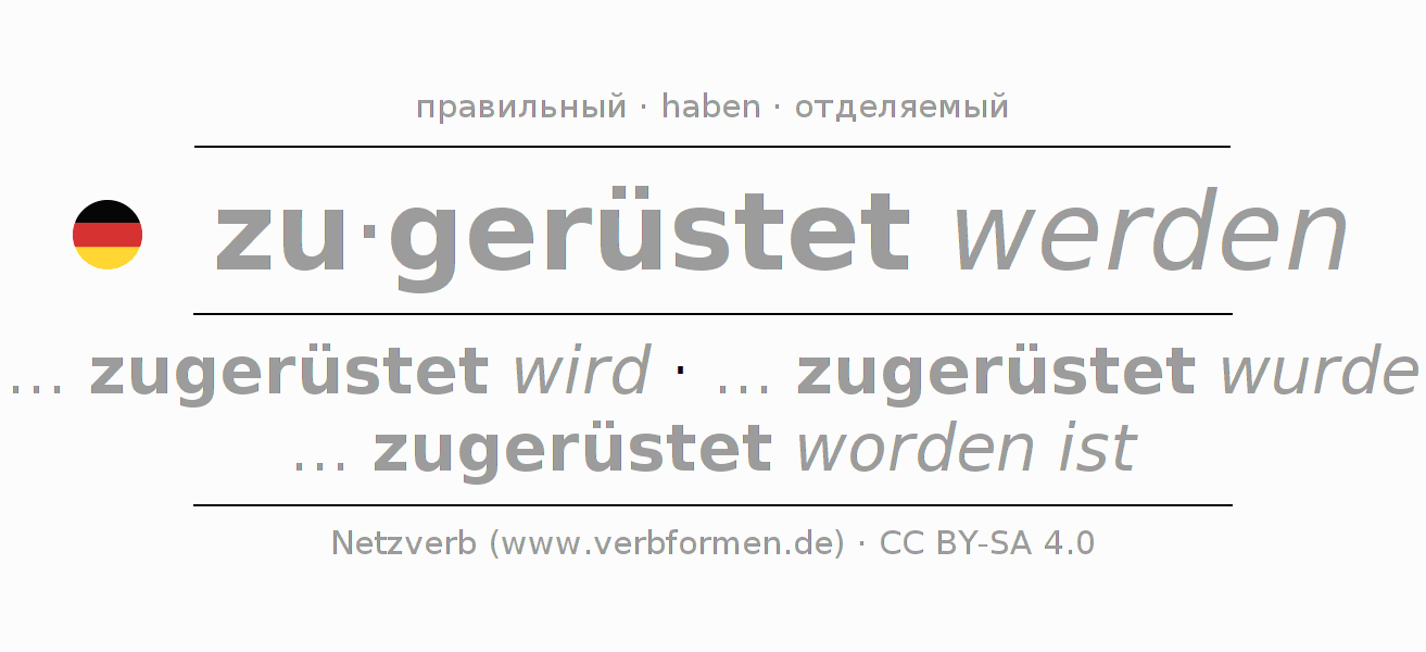 - Инфинитив II: zugerüstet worden sein, zugerüstet worden zu sein