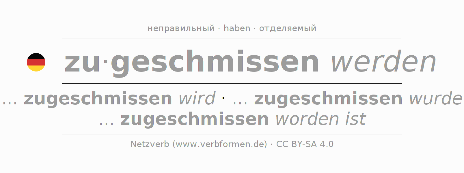 - Инфинитив I: zugeschmissen werden, zugeschmissen zu werden