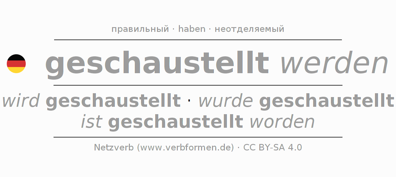 - Инфинитив II: geschaustellt worden sein, geschaustellt worden zu sein