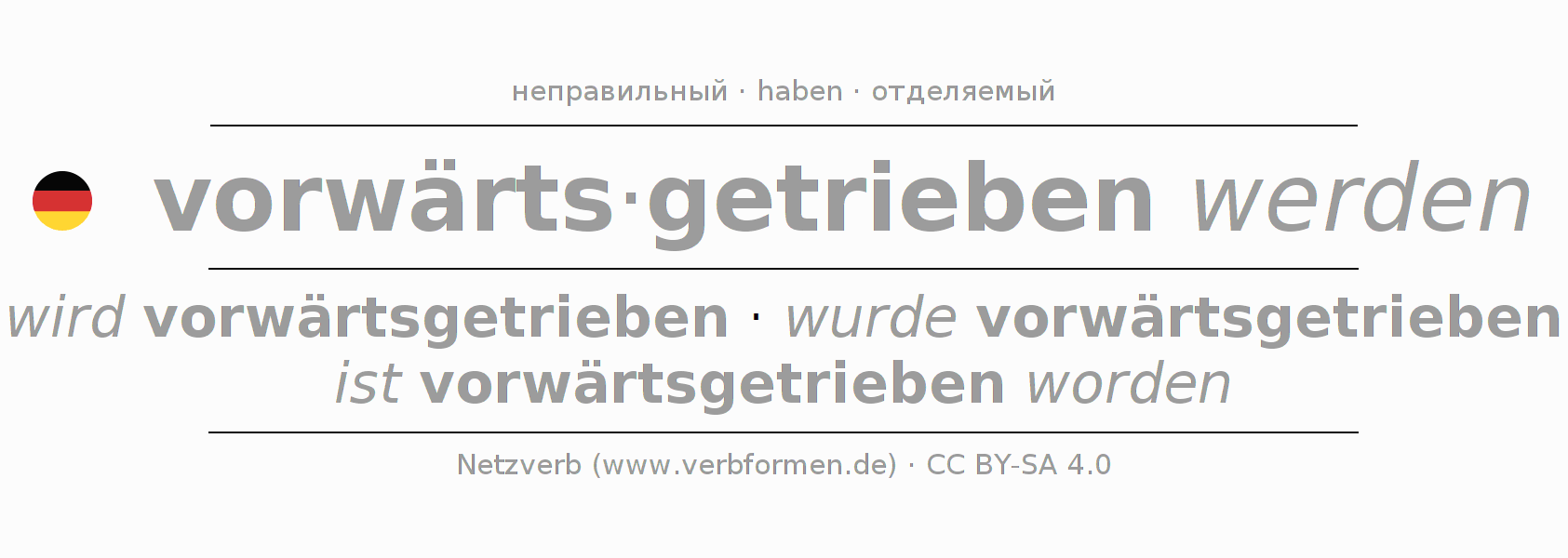 - Инфинитив I: vorwärtsgetrieben werden, vorwärtsgetrieben zu werden