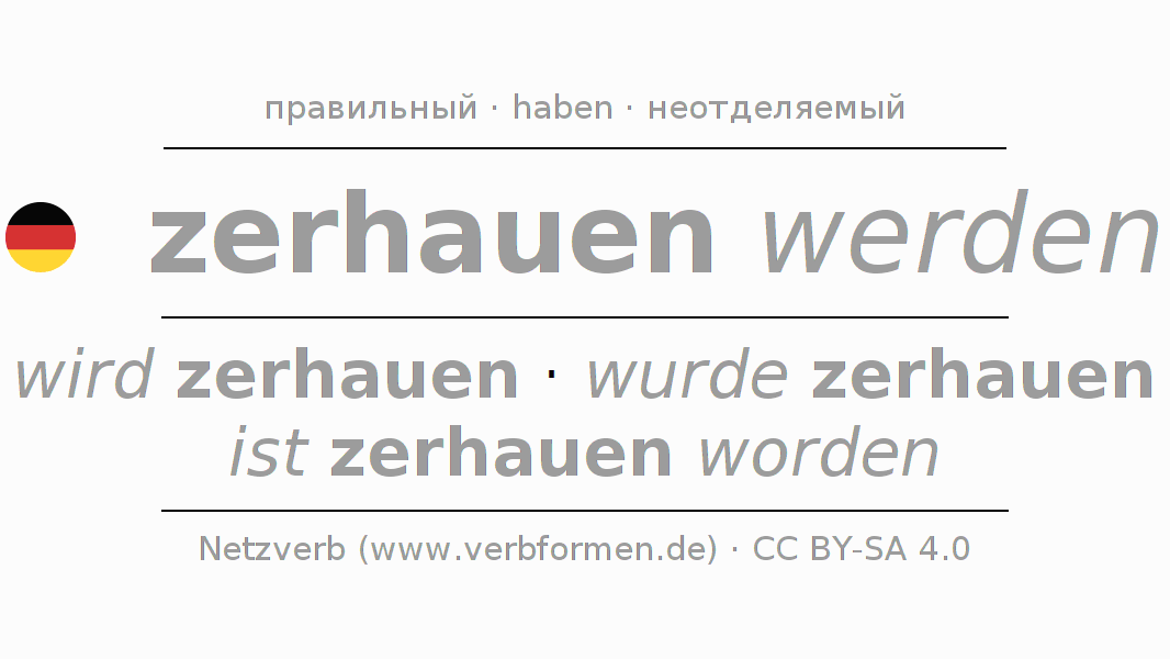 - Инфинитив I: zerhau(e)n werden, zerhau(e)n zu werden