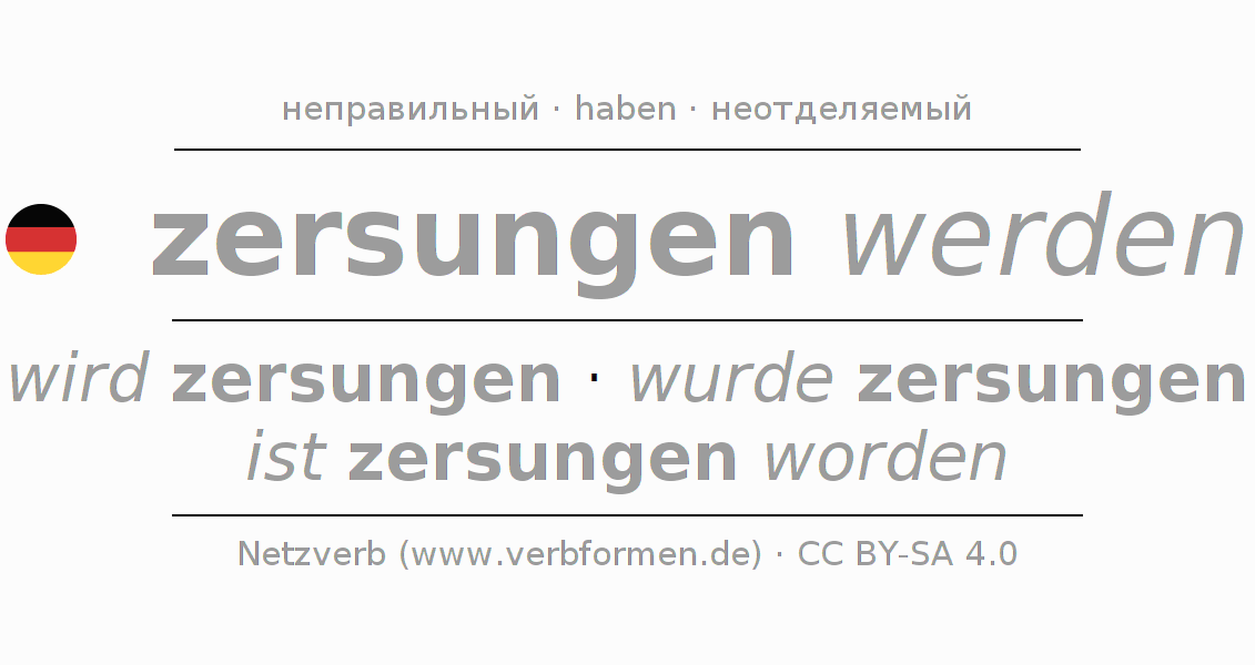 - Инфинитив II: zersungen worden sein, zersungen worden zu sein