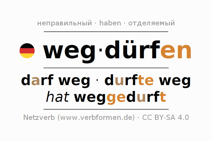 Глагол wegdürfen спрягается в индикативе Действительный залог (актив) в настоящем, прошедшем и будущем времени
