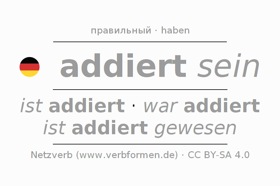 - Презенс: ich bin addiert, du bist addiert, er ist addiert, wir sind addiert, ihr seid addiert, sie sind addiert