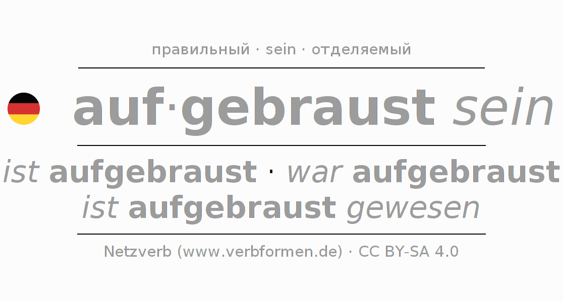 - Инфинитив I: aufgebraust sein, aufgebraust zu sein