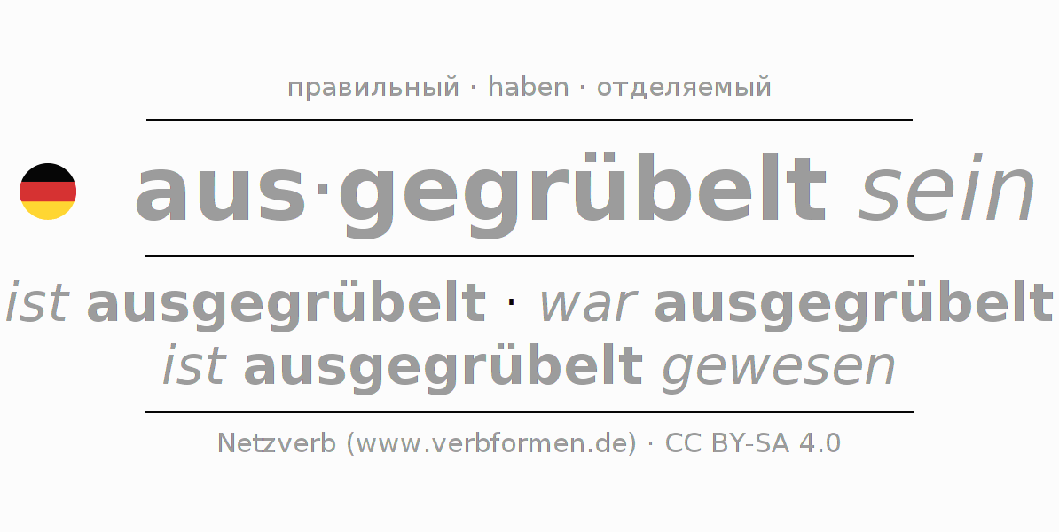 - Инфинитив II: ausgegrübelt gewesen sein, ausgegrübelt gewesen zu sein