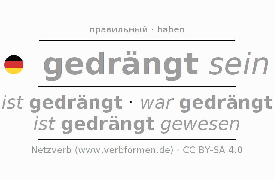 - Презенс: ich bin gedrängt, du bist gedrängt, er ist gedrängt, wir sind gedrängt, ihr seid gedrängt, sie sind gedrängt