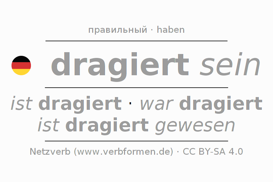 - Презенс: sei (du) dragiert, seien wir dragiert, seid (ihr) dragiert, seien Sie dragiert