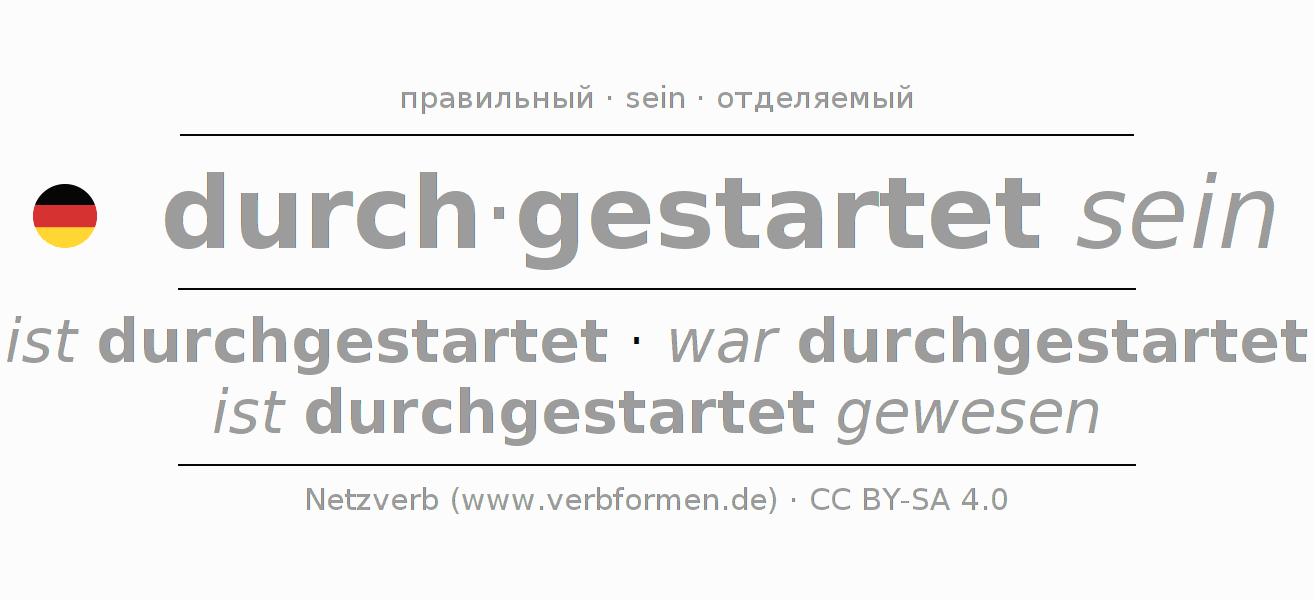 - Инфинитив I: durchgestartet sein, durchgestartet zu sein
