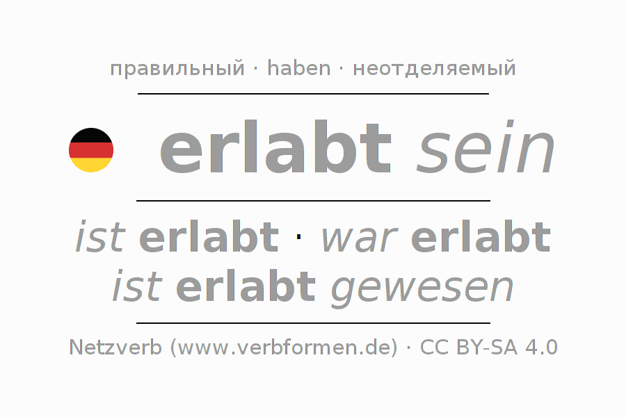 - Инфинитив I: erlabt sein, erlabt zu sein