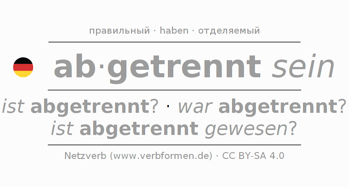 - Презенс: bin ich abgetrennt?, bist du abgetrennt?, ist er abgetrennt?, sind wir abgetrennt?, seid ihr abgetrennt?, sind sie abgetrennt?