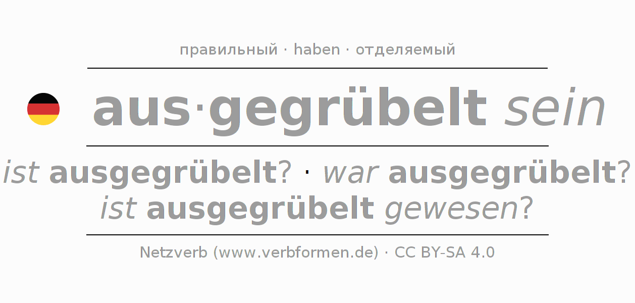 - Инфинитив II: ausgegrübelt gewesen sein, ausgegrübelt gewesen zu sein