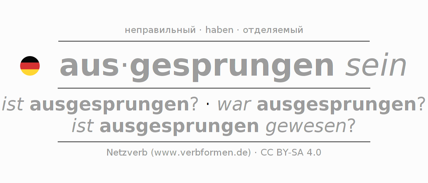 - Инфинитив I: ausgesprungen sein, ausgesprungen zu sein