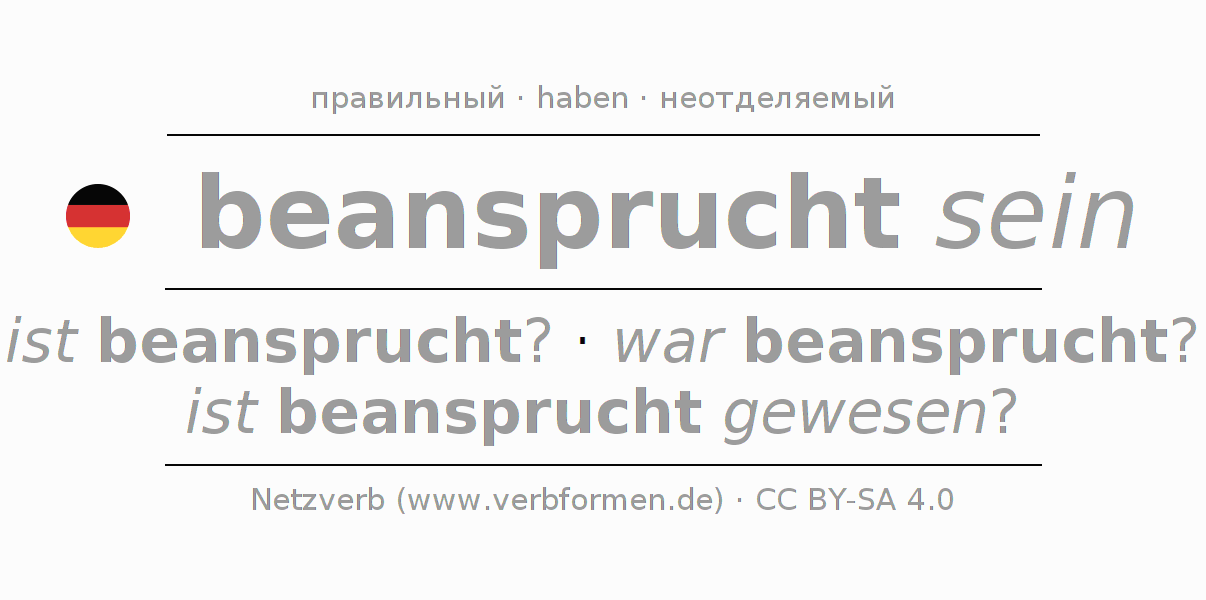 Все временные формы глагола и отглагольных форм beanspruchen