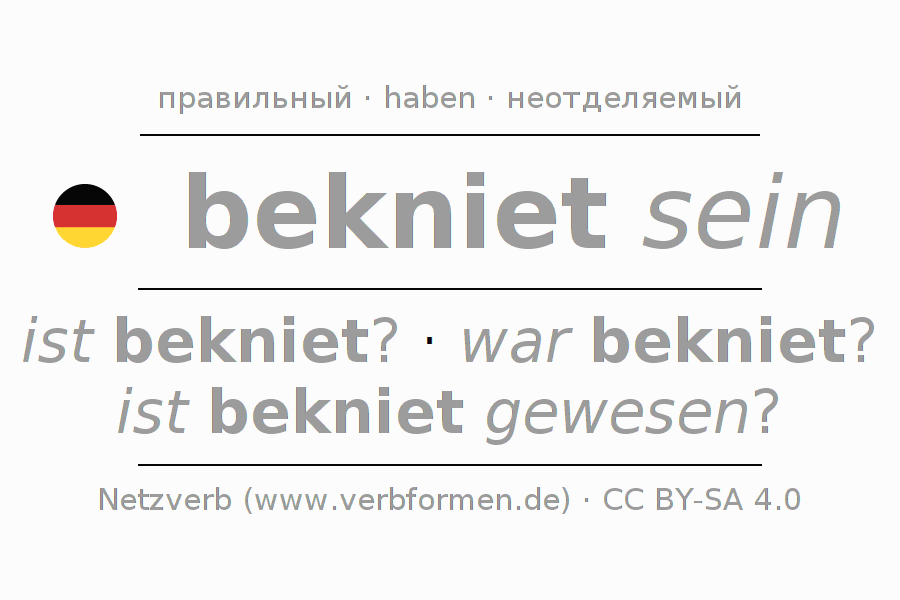 - Инфинитив I: bekniet sein, bekniet zu sein