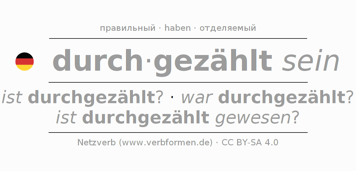 - Инфинитив I: durchgezählt sein, durchgezählt zu sein