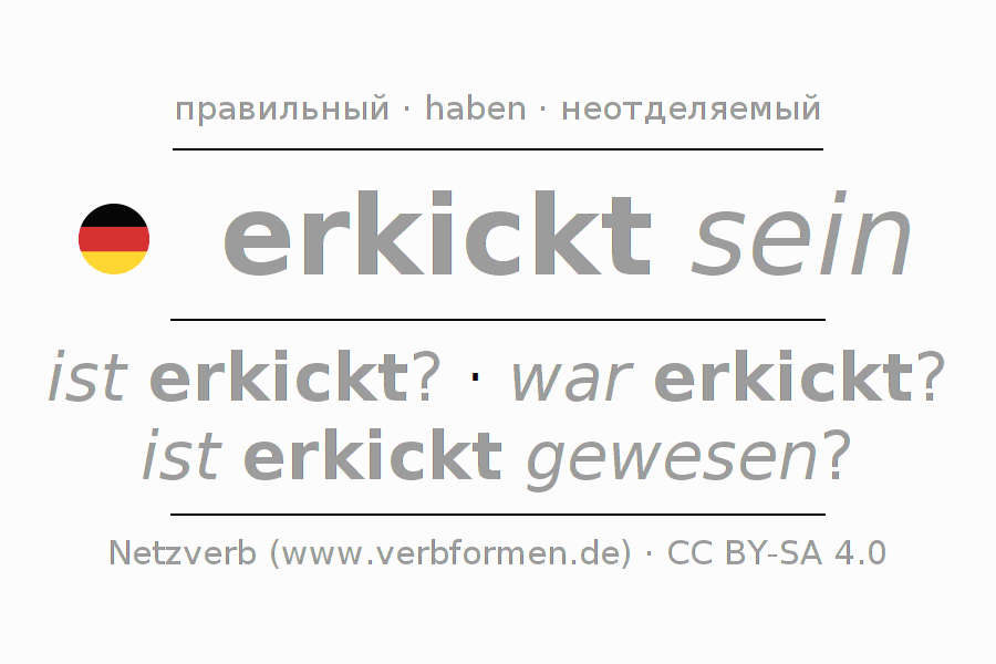 - Презенс: bin ich erkickt?, bist du erkickt?, ist er erkickt?, sind wir erkickt?, seid ihr erkickt?, sind sie erkickt?