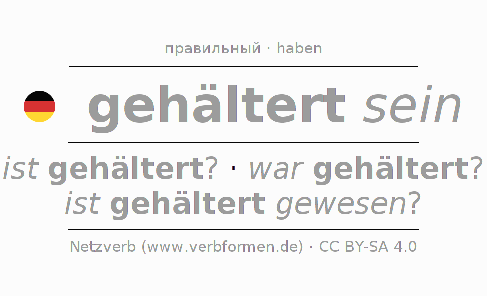 - Презенс: sei ich gehältert?, seiest du gehältert?, sei er gehältert?, seien wir gehältert?, seiet ihr gehältert?, seien sie gehältert?