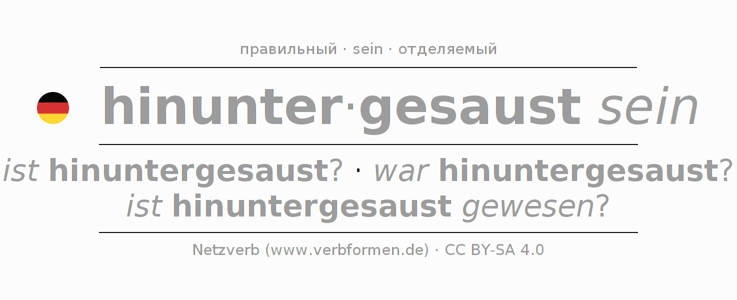 - Инфинитив I: hinuntergesaust sein, hinuntergesaust zu sein
