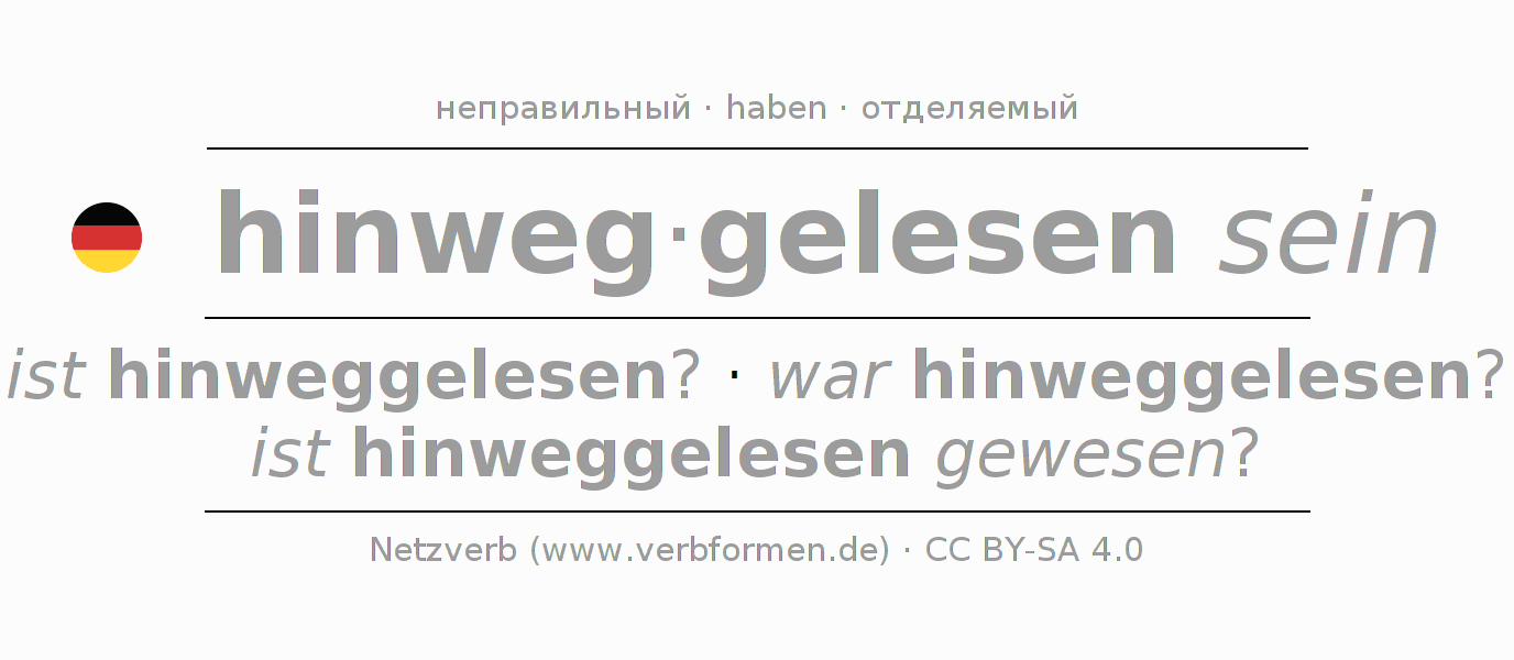 Все временные формы глагола и отглагольных форм hinweglesen