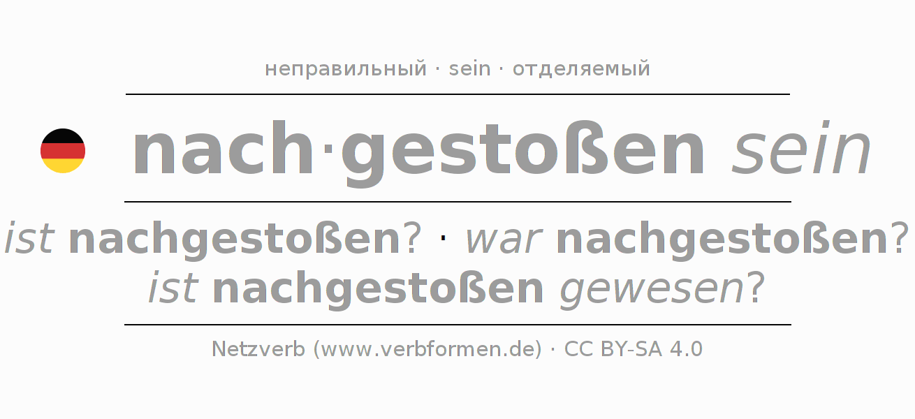- Инфинитив I: nachgestoßen sein, nachgestoßen zu sein
