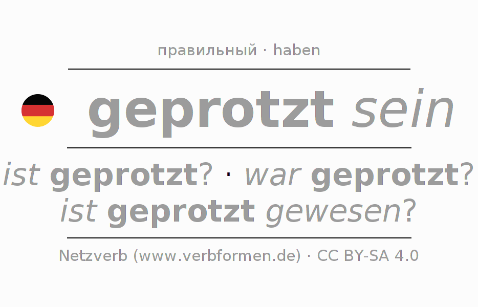 - Инфинитив II: geprotzt gewesen sein, geprotzt gewesen zu sein