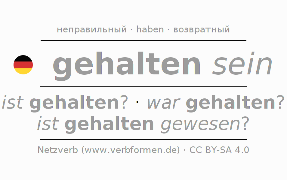 Глагол 'gehalten sein' онлайн как таблица глаголов со всеми наглядно представленными формами. Значение глагола gehalten sein таким образом является помощью для выполнения домашних заданий; подготовки к экзаменам и контрольным работам, а также к урокам немецкого языка; для обучения в вузах и при получении образования для взрослых. Именно для изучающих немецкий язык – правильное спряжение глаголов (ist gehalten? - war gehalten? - ist gehalten gewesen?) является решающим фактором.