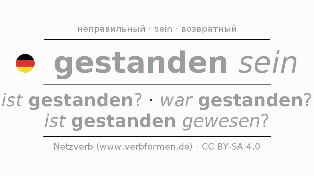 - Инфинитив I: gestanden sein, gestanden zu sein