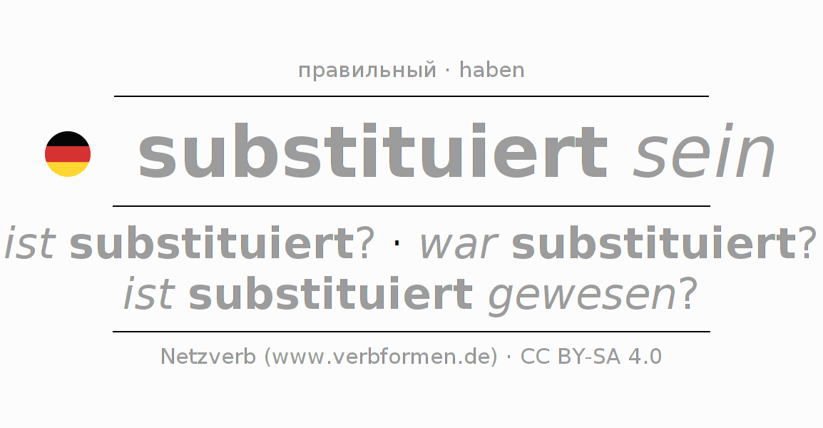 - Презенс: bin ich substituiert?, bist du substituiert?, ist er substituiert?, sind wir substituiert?, seid ihr substituiert?, sind sie substituiert?