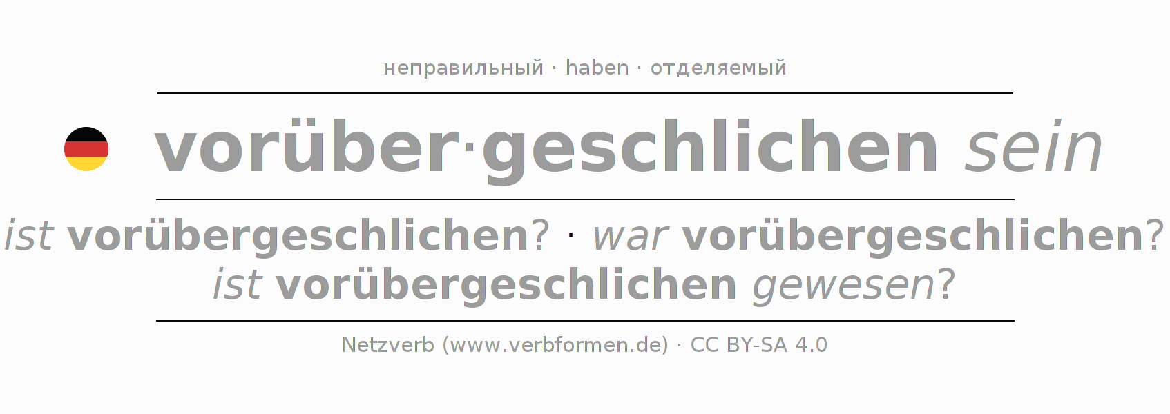 - Инфинитив I: vorübergeschlichen sein, vorübergeschlichen zu sein