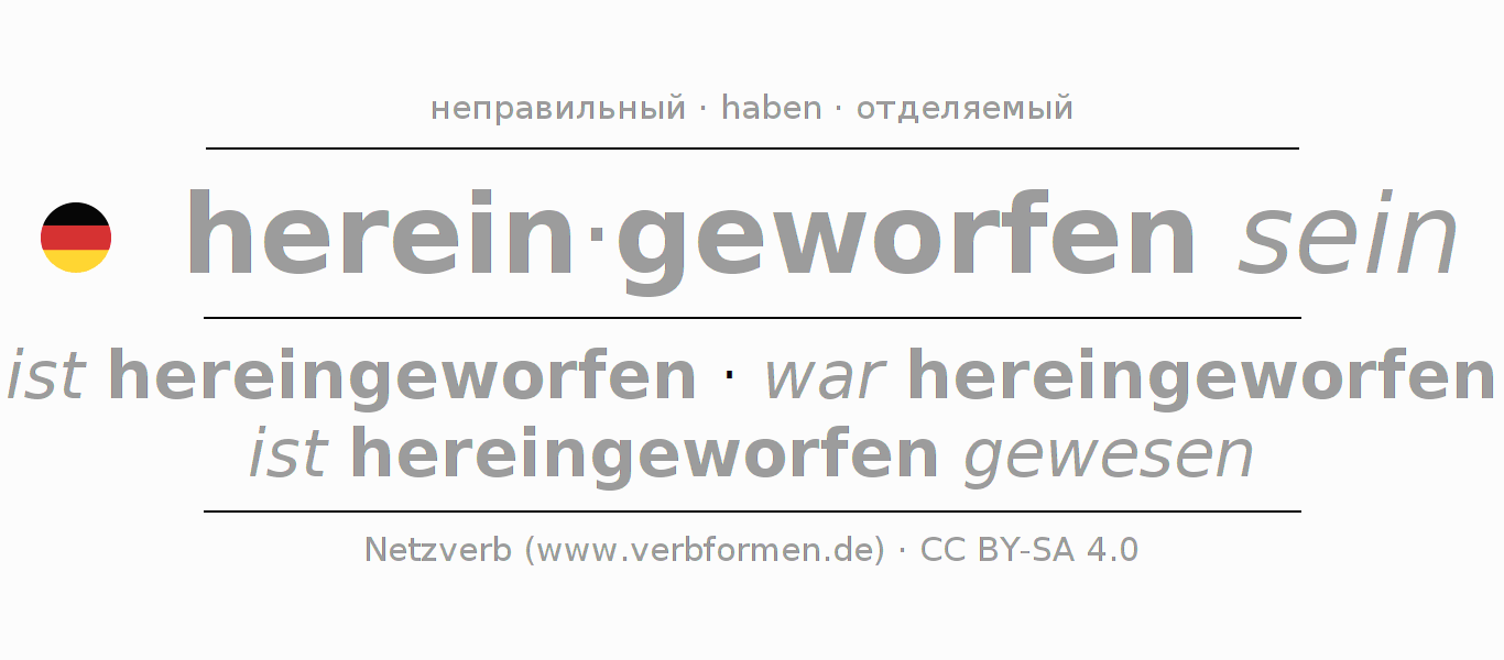 Все временные формы глагола и отглагольных форм hereinwerfen