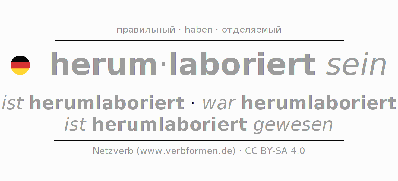 Все временные формы глагола и отглагольных форм herumlaborieren