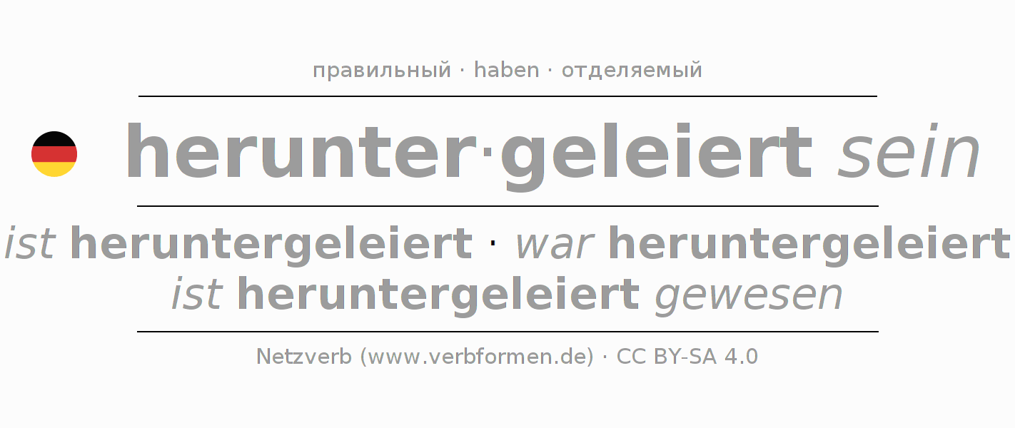 - Инфинитив I: heruntergeleiert sein, heruntergeleiert zu sein