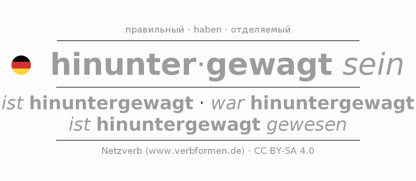 - Инфинитив II: hinuntergewagt gewesen sein, hinuntergewagt gewesen zu sein