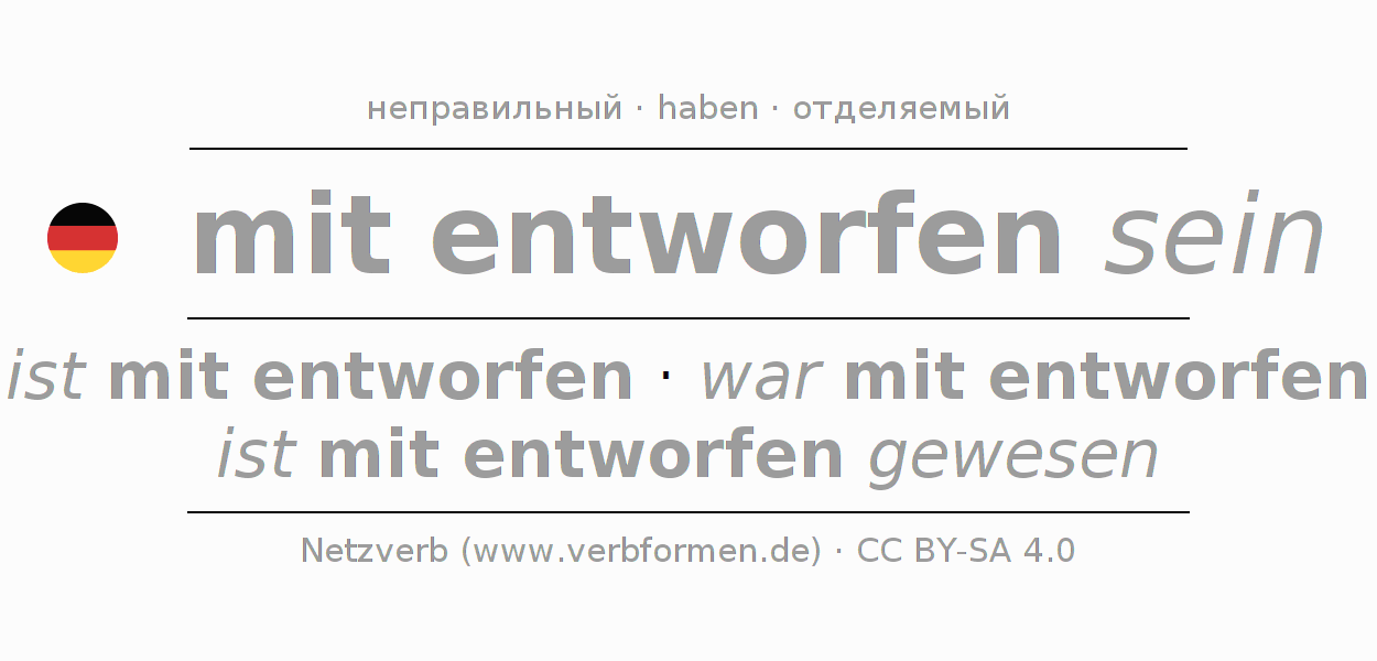 Все временные формы глагола и отглагольных форм mitentwerfen