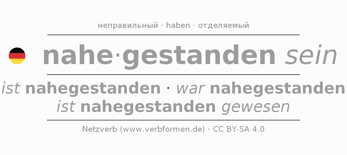 - Инфинитив I: nahegestanden sein, nahegestanden zu sein